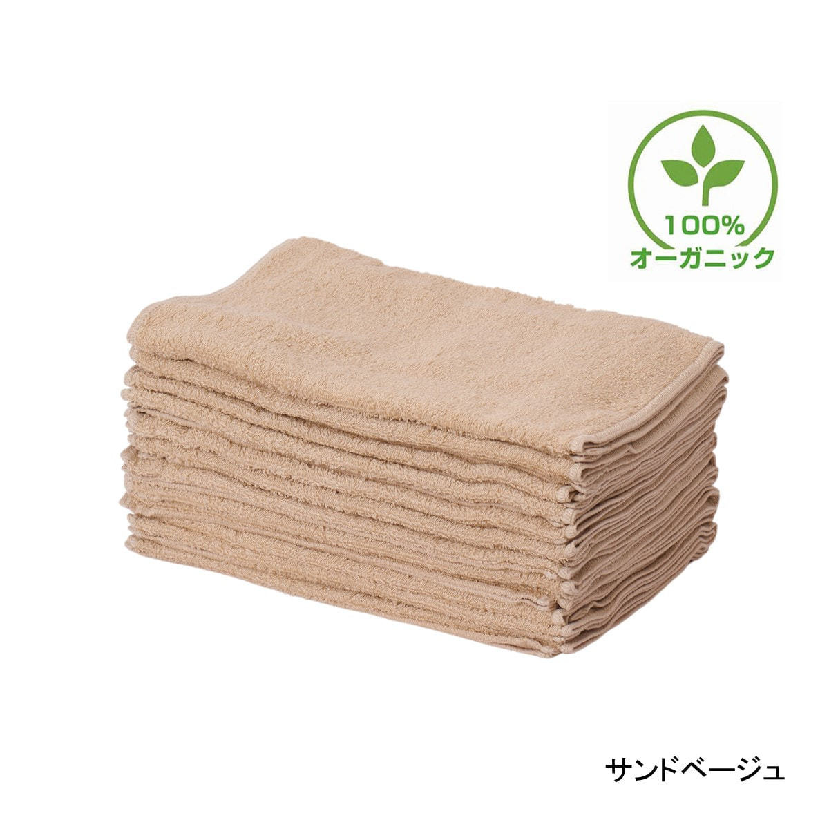 【ホテル仕様】オーガニックコットンタオル 34×85cm 12枚入り(サンドベージュ)